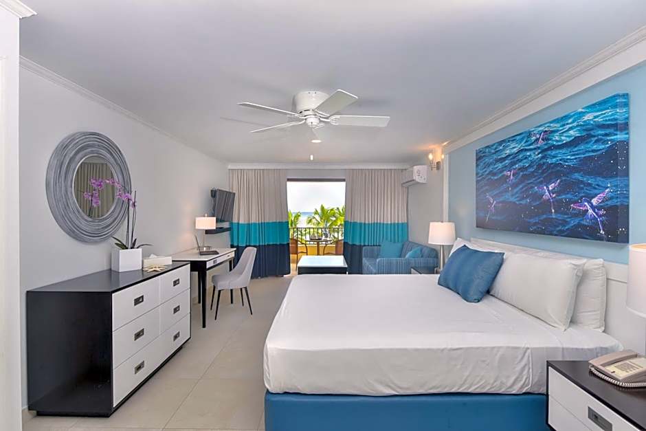 These studios feature porcelain tiles and granite counter tops. these oceanfront rooms have air-conditioning, balcony, daily maid service, free WiFi and fully equipped kitchenettes.